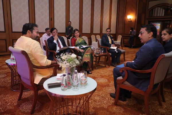 Prominent industry leaders including Mr. Vishal Kamat, Co-Chair, CII WR Sub Committee on Tourism and Hospitality, CEO, Kamat Hotels India Limited, Mr. Anuraag Bhatnagar, CEO, The Leela Palaces, Hotels and Resorts, Cdr Nevil Malao, VSM (Retd), Vice President Head – Cruise & Navy Cell, J. M. Baxi & Co., Mr. Dhimant Bakshi, CEO, Imagica, Mr. Santhosh Kutty, CEO – Hotels, Mahindra Hotels and Resorts one to one interaction with Hon`ble Minister of Tourism, Shri G. Kishan Reddy at the Roadshow in Mumbai.